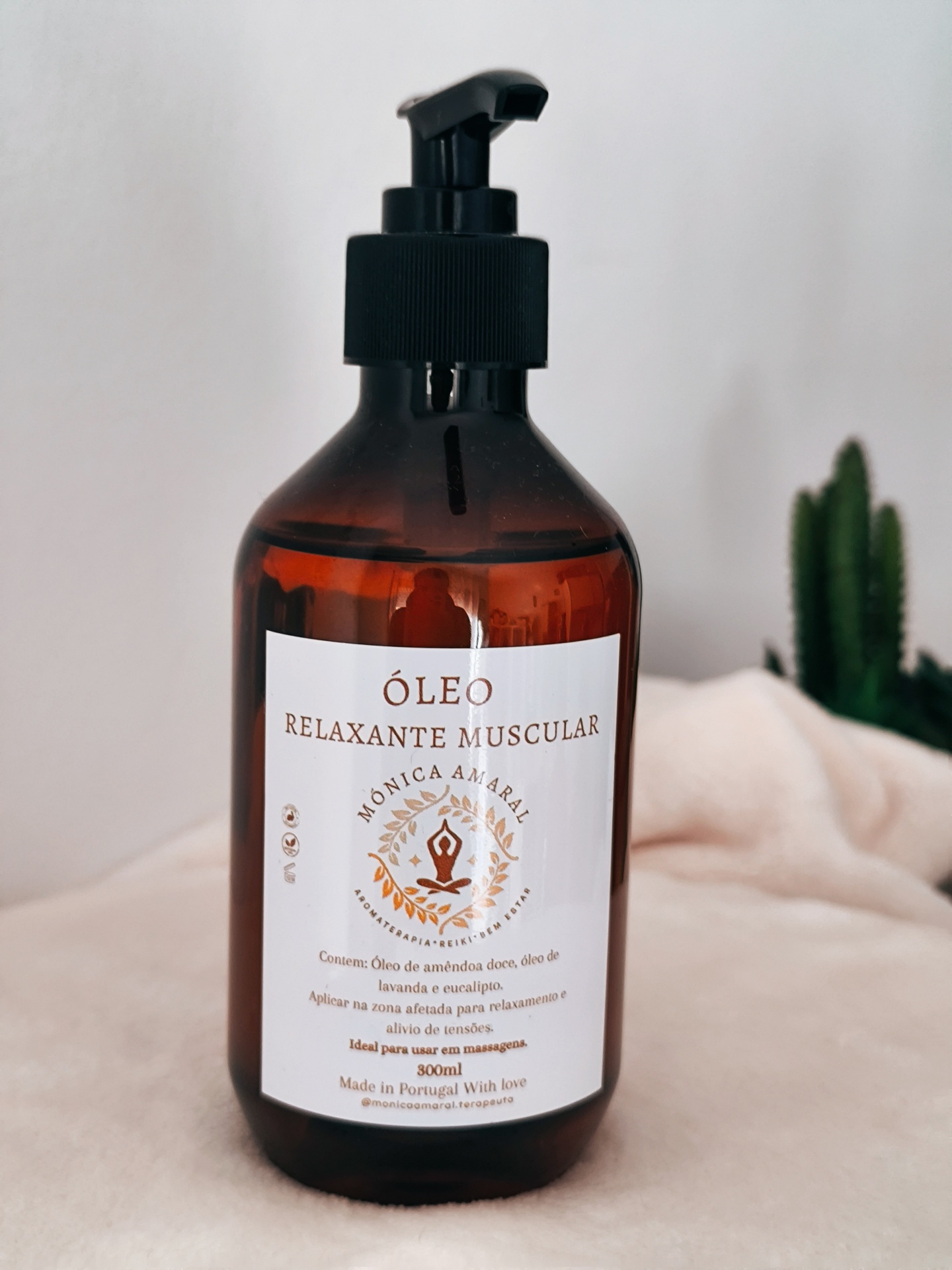 Óleo de amêndoa, lavanda e eucalipto.